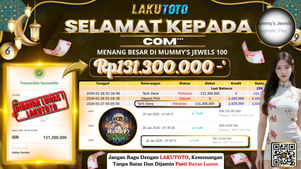 Kategori Bukti Bayar JP BUKTI BAYAR JP Penulis artikel Oleh Operator Lakutoto Tanggal artikel 28 Januari 2026 MUMMY’S JEWELS 100 RABU, 28 JANUARI 2026 RP131.300.000,- SELAMAT KEPADa PEMENANG, SALAM JP ← BUKTI BAYAR JP → BUKTI BAYAR JP