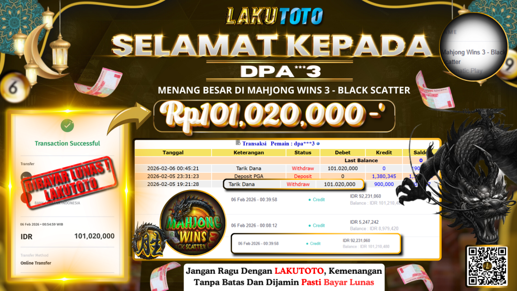 Kategori Bukti Bayar JP BUKTI BAYAR JP Penulis artikel Oleh Operator Lakutoto Tanggal artikel 6 Februari 2026 MAHJONG WINS 3 – BLACK SCATTER JUMAT, 06 FEBRUARI 2026 RP101.020.000,- SELAMAT KEPADa PEMENANG, SALAM JP ← BUKTI BAYAR JP → BUKTI BAYAR JP