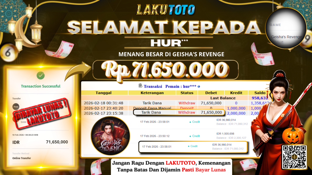 Kategori Bukti Bayar JP BUKTI BAYAR JP Penulis artikel Oleh Operator Lakutoto Tanggal artikel 18 Februari 2026 GEISHA’S REVENGE RABU, 18 FEBRUARI 2026 RP71.650.000,- SELAMAT KEPADa PEMENANG, SALAM JP ← BUKTI BAYAR JP → BUKTI BAYAR JP