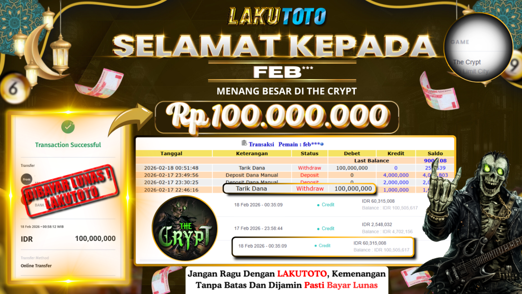 Kategori Bukti Bayar JP BUKTI BAYAR JP Penulis artikel Oleh Operator Lakutoto Tanggal artikel 18 Februari 2026 THE CRYPT RABU, 18 FEBRUARI 2026 RP100.000.000,- SELAMAT KEPADa PEMENANG, SALAM JP ← BUKTI BAYAR JP → BUKTI BAYAR JP