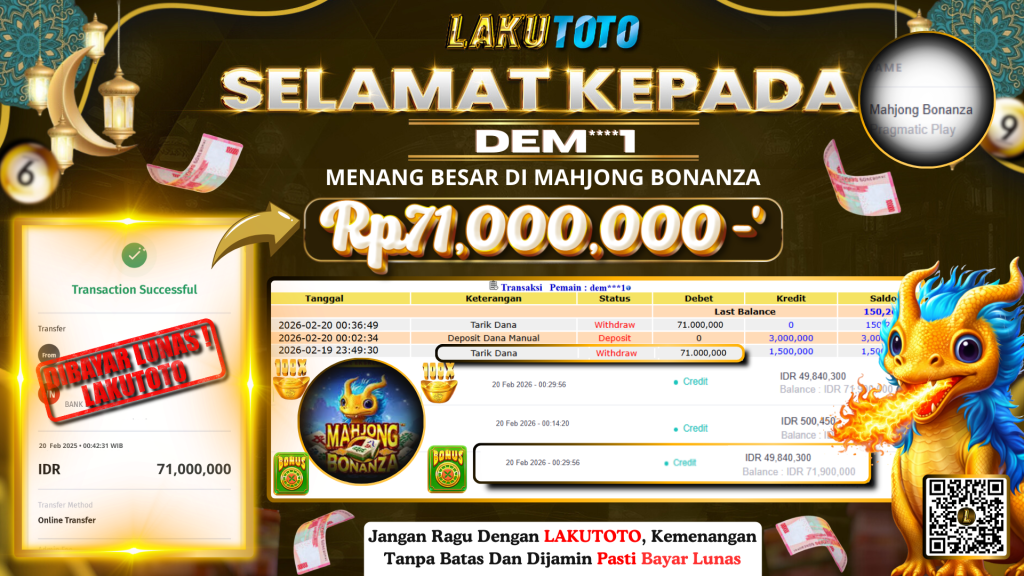 Kategori Bukti Bayar JP BUKTI BAYAR JP Penulis artikel Oleh Operator Lakutoto Tanggal artikel 20 Februari 2026 MAHJONG BONANZA JUMAT, 20 FEBRUARI 2026 RP71.000.000,- SELAMAT KEPADa PEMENANG, SALAM JP ← BUKTI BAYAR JP → BUKTI BAYAR JP