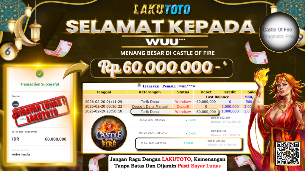 Kategori Bukti Bayar JP BUKTI BAYAR JP Penulis artikel Oleh Operator Lakutoto Tanggal artikel 20 Februari 2026 CASTLE OF FIRE JUMAT, 20 FEBRUARI 2026 RP60.000.000,- SELAMAT KEPADa PEMENANG, SALAM JP ← BUKTI BAYAR JP