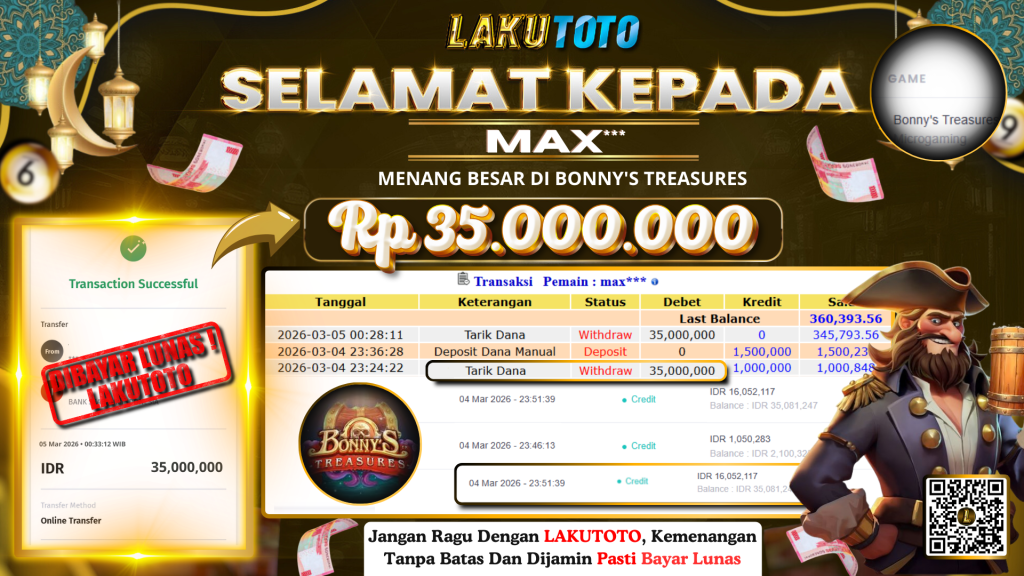 Kategori Bukti Bayar JP BUKTI BAYAR JP Penulis artikel Oleh Operator Lakutoto Tanggal artikel 5 Maret 2026 BONNY’S TREASURES KAMIS, 05 ,MARET 2026 RP35.000.000,- SELAMAT KEPADa PEMENANG, SALAM JP ← BUKTI BAYAR JP → BUKTI BAYAR JP