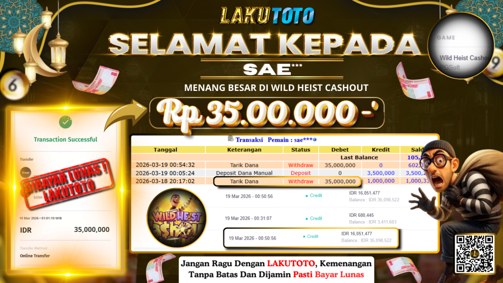 Kategori Bukti Bayar JP BUKTI BAYAR JP Penulis artikel Oleh Operator Lakutoto Tanggal artikel 19 Maret 2026 WILD HEIST CASHOUT KAMIS, 19 MARET 2026 RP35.000.000,- SELAMAT KEPADa PEMENANG, SALAM JP ← BUKTI BAYAR JP → BUKTI BAYAR JP