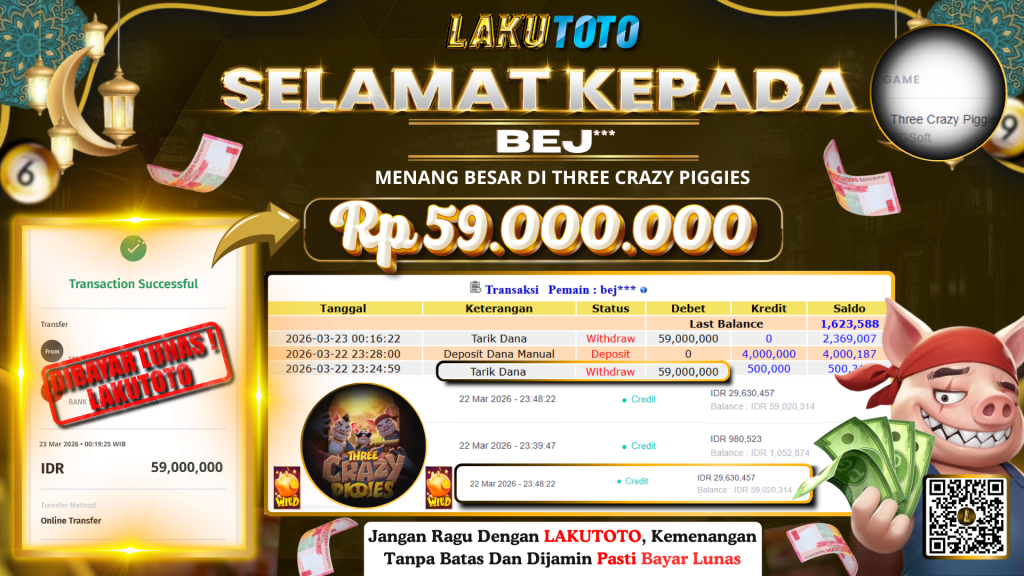 Kategori Bukti Bayar JP BUKTI BAYAR JP Penulis artikel Oleh Operator Lakutoto Tanggal artikel 23 Maret 2026 THREE CRAZY PIGGIES SENIN, 23 MARET 2026 RP59.000.000,- SELAMAT KEPADa PEMENANG, SALAM JP ← PREDIKSI HONGKONG LOTTO → BUKTI BAYAR JP