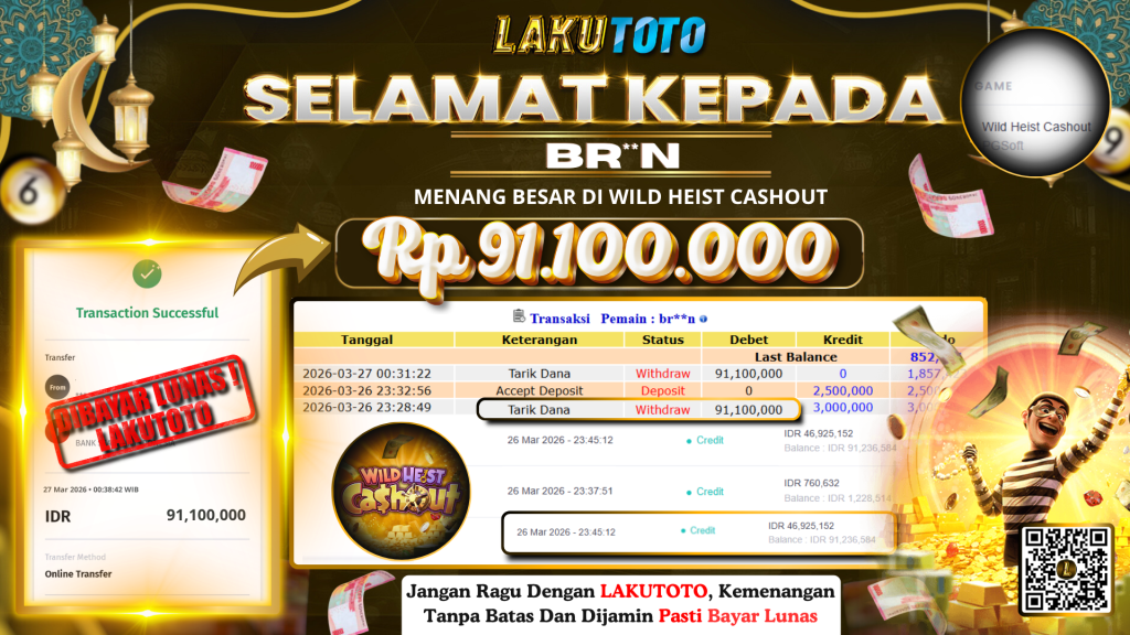 Kategori Bukti Bayar JP BUKTI BAYAR JP Penulis artikel Oleh Operator Lakutoto Tanggal artikel 27 Maret 2026 WILD HEIST CASHOUT jUMAT, 27 MARET 2026 RP91.100.000,- SELAMAT KEPADa PEMENANG, SALAM JP ← BUKTI BAYAR JP → BUKTI BAYAR JP