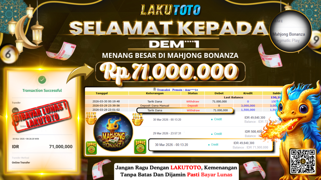 Kategori Bukti Bayar JP BUKTI BAYAR JP Penulis artikel Oleh Operator Lakutoto Tanggal artikel 30 Maret 2026 MAHJONG BONANZA SENIN, 30 MARET 2026 RP71.000.000,- SELAMAT KEPADa PEMENANG, SALAM JP ← BUKTI BAYAR JP → BUKTI BAYAR JP