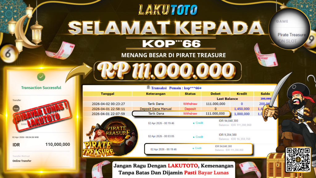 Kategori Bukti Bayar JP BUKTI BAYAR JP Penulis artikel Oleh Operator Lakutoto Tanggal artikel 2 April 2026 PIRATE TREASURE KAMIS, 02 APRIL 2026 RP 111.000.000 SELAMAT KEPADa PEMENANG, SALAM JP ← BUKTI BAYAR JP → BUKTI BAYAR JP
