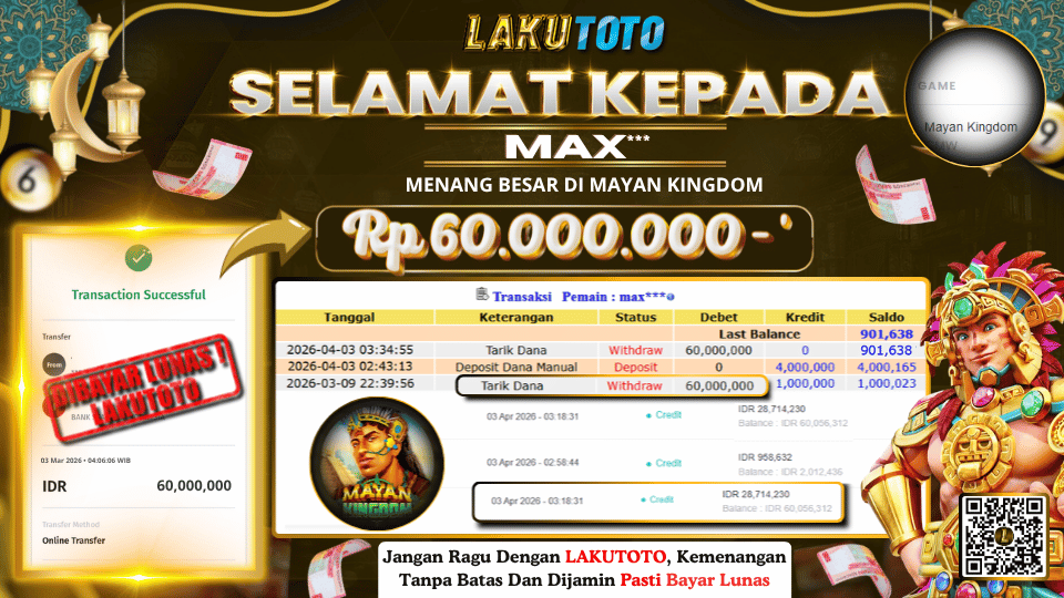 Kategori Bukti Bayar JP BUKTI BAYAR JP Penulis artikel Oleh Operator Lakutoto Tanggal artikel 3 April 2026 MAYAN KINGDOM JUMAT, 03 APRIL 2026 RP 60.000.000 SELAMAT KEPADa PEMENANG, SALAM JP ← BUKTI BAYAR JP