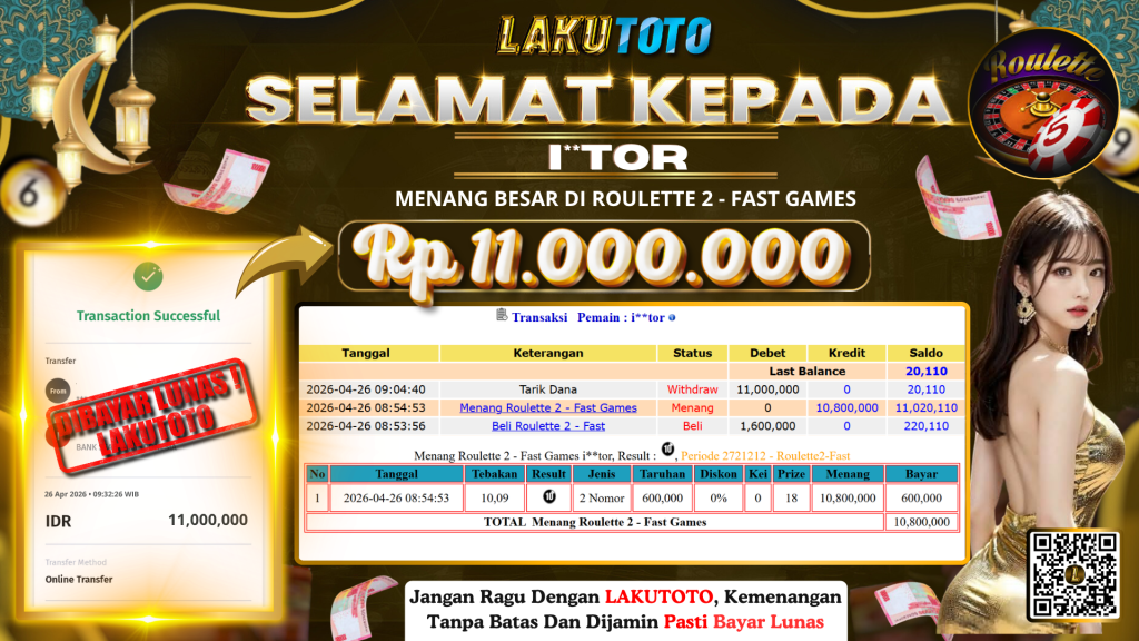 Kategori Bukti Bayar JP BUKTI BAYAR JP Penulis artikel Oleh Operator Lakutoto Tanggal artikel 26 April 2026 ROULETTE 2 FAST- GAMES MINGGU, 26 APRIL 2026 RP 11.000.000 SELAMAT KEPADa PEMENANG, SALAM JP ← BUKTI BAYAR JP