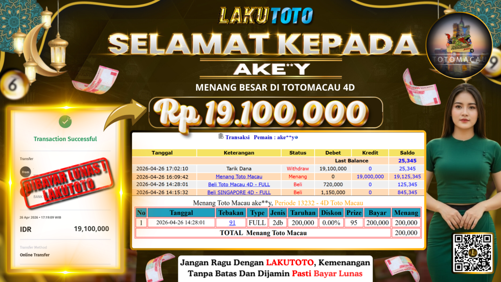 Kategori Bukti Bayar JP BUKTI BAYAR JP Penulis artikel Oleh Operator Lakutoto Tanggal artikel 26 April 2026 TOTOMACAU 4D MINGGU, 26 APRIL 2026 RP 19.100.000 SELAMAT KEPADa PEMENANG, SALAM JP ← BUKTI BAYAR JP