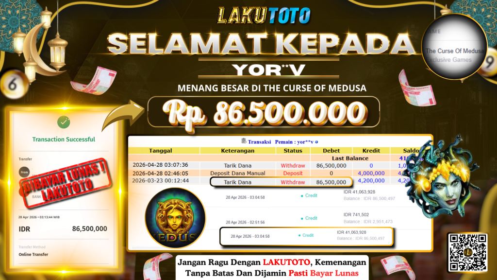 Kategori Bukti Bayar JP BUKTI BAYAR JP Penulis artikel Oleh Operator Lakutoto Tanggal artikel 28 April 2026 THE CURSE OF MEDUSA SELASA, 28 APRIL 2026 RP 86.500.000 SELAMAT KEPADa PEMENANG, SALAM JP ← PREDIKSI HONGKONG LOTTO