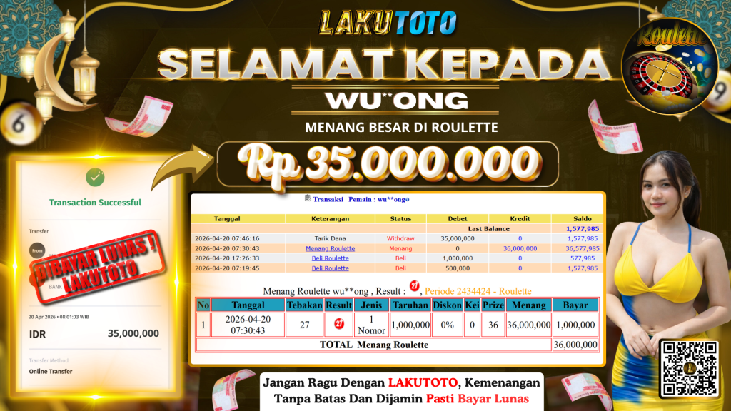 Kategori Bukti Bayar JP BUKTI BAYAR JP CASINO Penulis artikel Oleh Operator Lakutoto Tanggal artikel 20 April 2026 ROULETTE SENIN, 20 APRIL 2026 RP 35.000.000 SELAMAT KEPADa PEMENANG, SALAM JP ← BUKTI BAYAR JP → BUKTI BAYAR JP